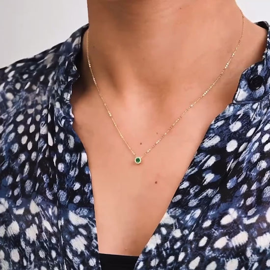 Precious Stone & Halo Diamond Pendant